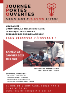 Nous vous attendons nombreux pour cette journée dédiée à l’étiopathie et à la découverte de notre faculté.