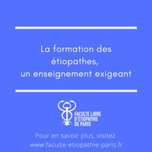 La Faculté Libre d’Etiopathie de Paris a vu le jour en 1981 dans le 20ème arrondissement de Paris. Elle forme chaque année plus d’une centaine d’étudiants. Au terme de leur cursus, ces jeunes professionnels possèdent une parfaite connaissance du corps humain et de son fonctionnement. En effet, 6 années d’étude sont nécessaires pour obtenir un diplôme d’étiopathe et, tout au long de son cursus, l’étudiant apprend à établir le diagnostic étiopathique.
